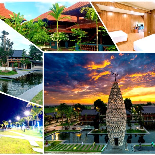 Đông Đô Village được biết đến là tổ hợp nhà hàng sang trọng, khách sạn tiêu chuẩn 3* và khu tham quan giải trí đa dạng như: Bể bơi, bảo tàng Thần Nông, cafe, hoạt động trải nghiệm an toàn, giao thông cho trẻ em…Trong đấy điểm nhấn là tháp Thần Nông – Tòa bảo tháp từ cối đá tạo hình hạt lúa lớn nhất Thế giới.